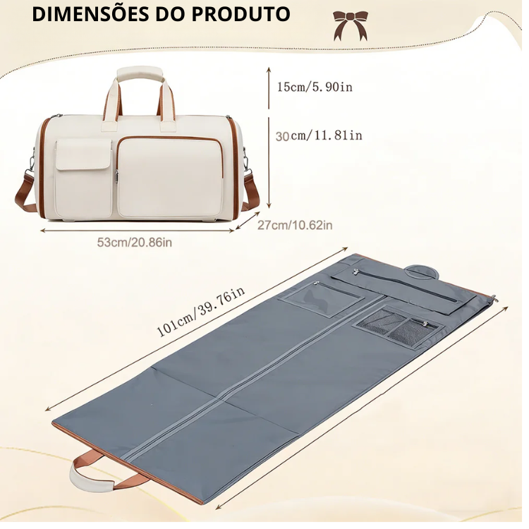 Viaje com mais organização, proteção e elegância. Garanta agora a sua Bolsa 3 em 1 e transforme sua forma de viajar!